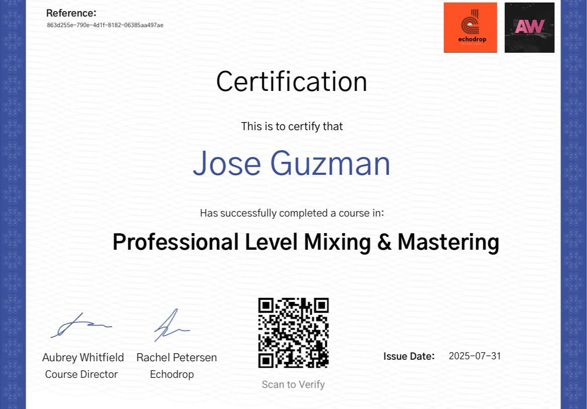 I am a music producer/audio engineer currently living in California/TJ. I started producing in November 2020 after discovering music production and essentially falling in love with it.